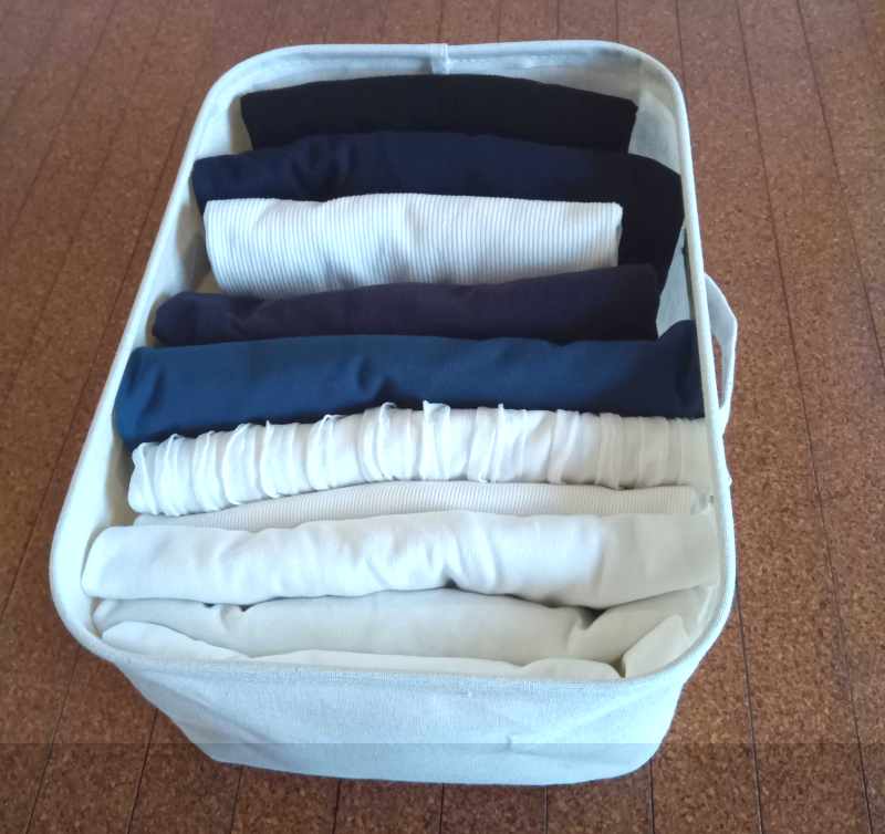 畳んだ服は無印良品のポリエステルソフトボックスのこの中に入るだけと決めています。